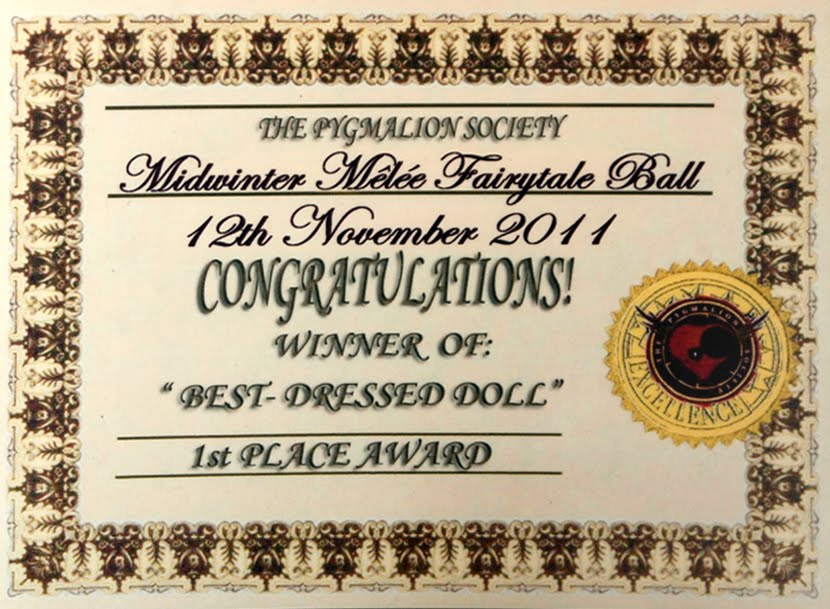 I was very lucky early on in my doll evolution to win first prize at the Pygmalion Society's 2011 London bjd Fairytales convention for best dressed doll.
